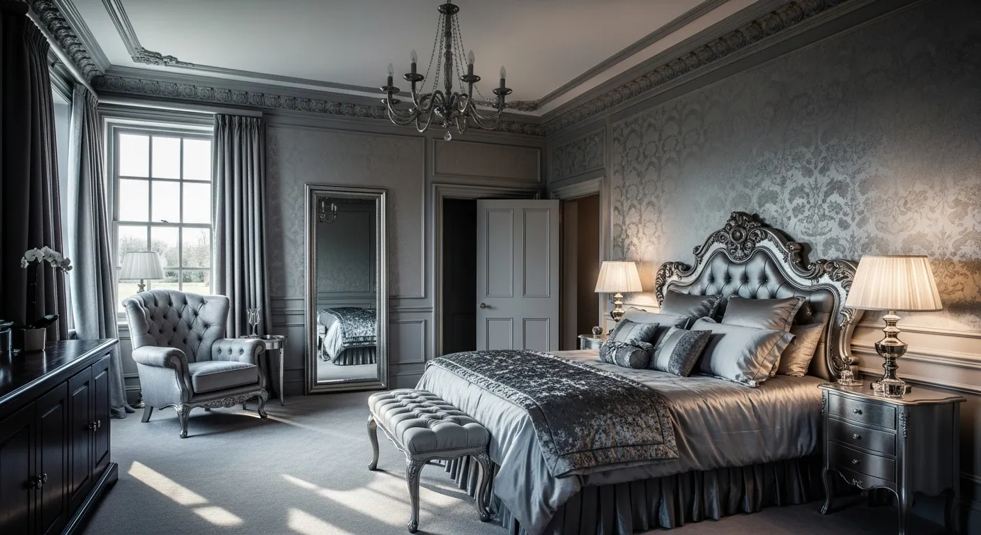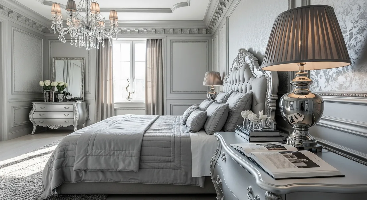 Step into a world of classic luxury with this stunning silver bedroom! The intricate textures and soft hues create an atmosphere that feels both serene and sophisticated. The shimmering curtains and plush bedding draw you in, making it the perfect retreat. To enhance this luxurious vibe, consider adding a few metallic accents, like a chic silver lamp or a decorative mirror. These elements not only complement the color palette but also reflect light, adding depth and warmth to your space. You’ll absolutely love how inviting this room feels!