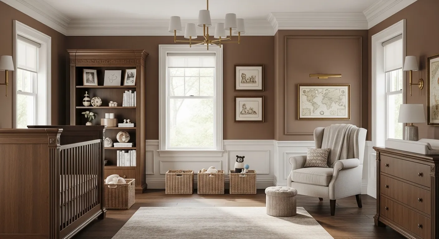 Classic Luxury Nursery with Warm Brown Accents