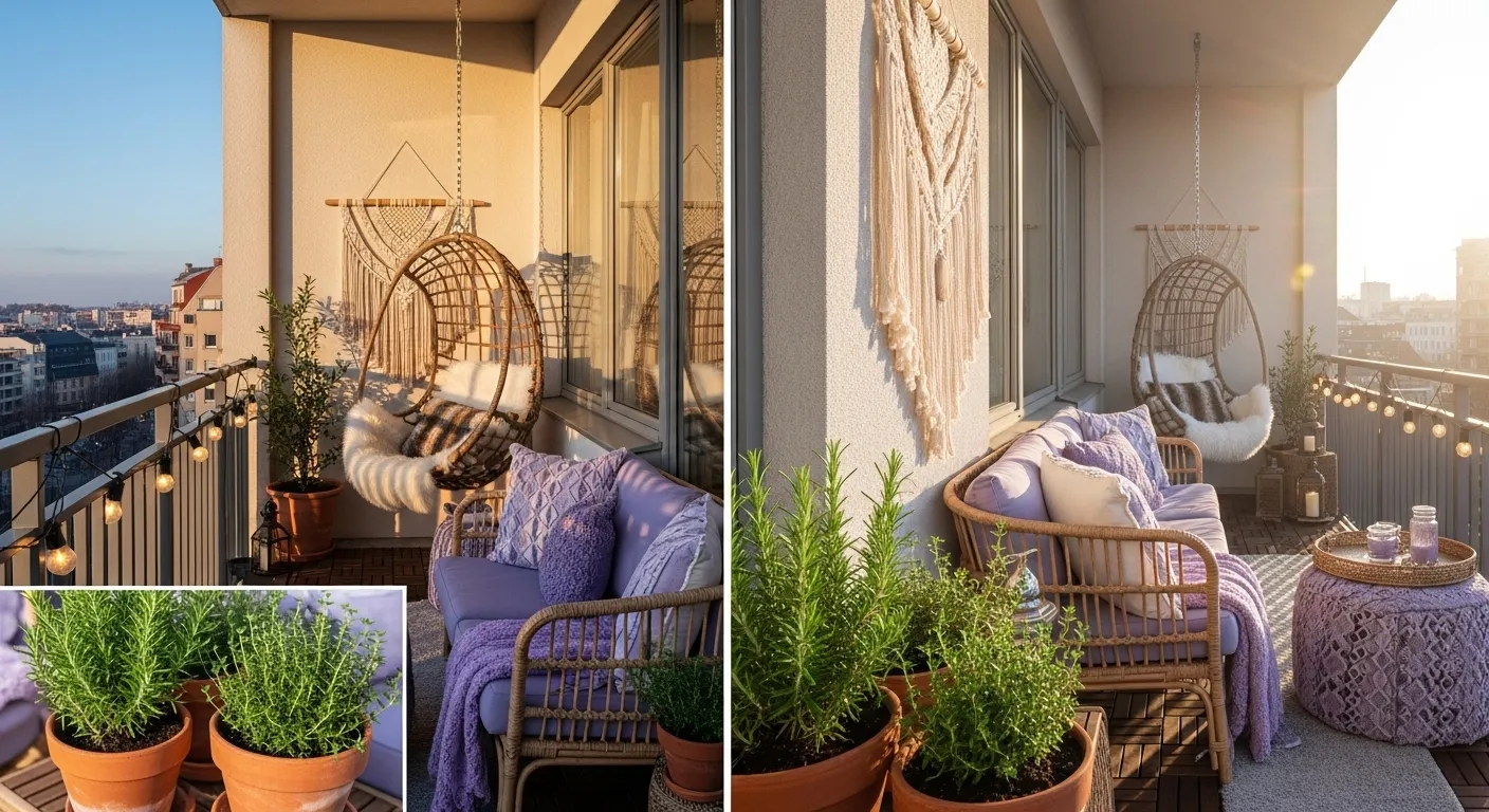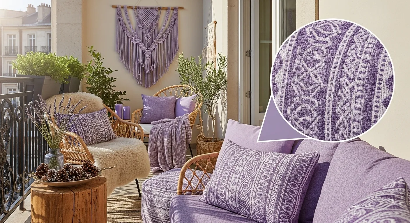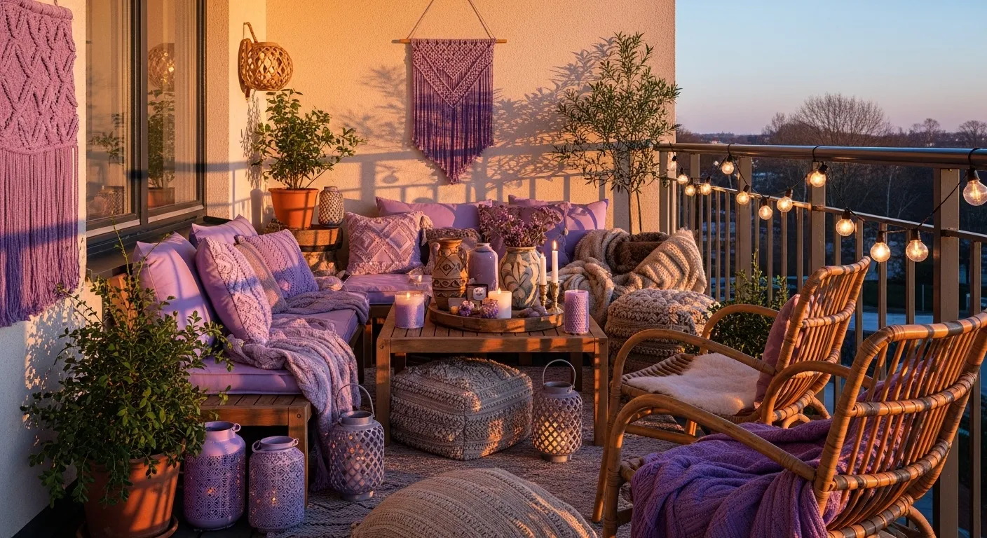 Imagine sipping hot cocoa while wrapped in a soft lavender blanket on your bohemian-styled balcony! The warmth of plush cushions and a fluffy throw invites you to snuggle up and enjoy the season. This dreamy lavender color palette creates a soothing atmosphere, perfect for winter evenings. Add some potted plants for a touch of greenery and don’t forget a few natural elements, like pinecones or wooden accents, to ground the look. For an extra cozy vibe, hang a macramé wall piece to tie the whole space together!