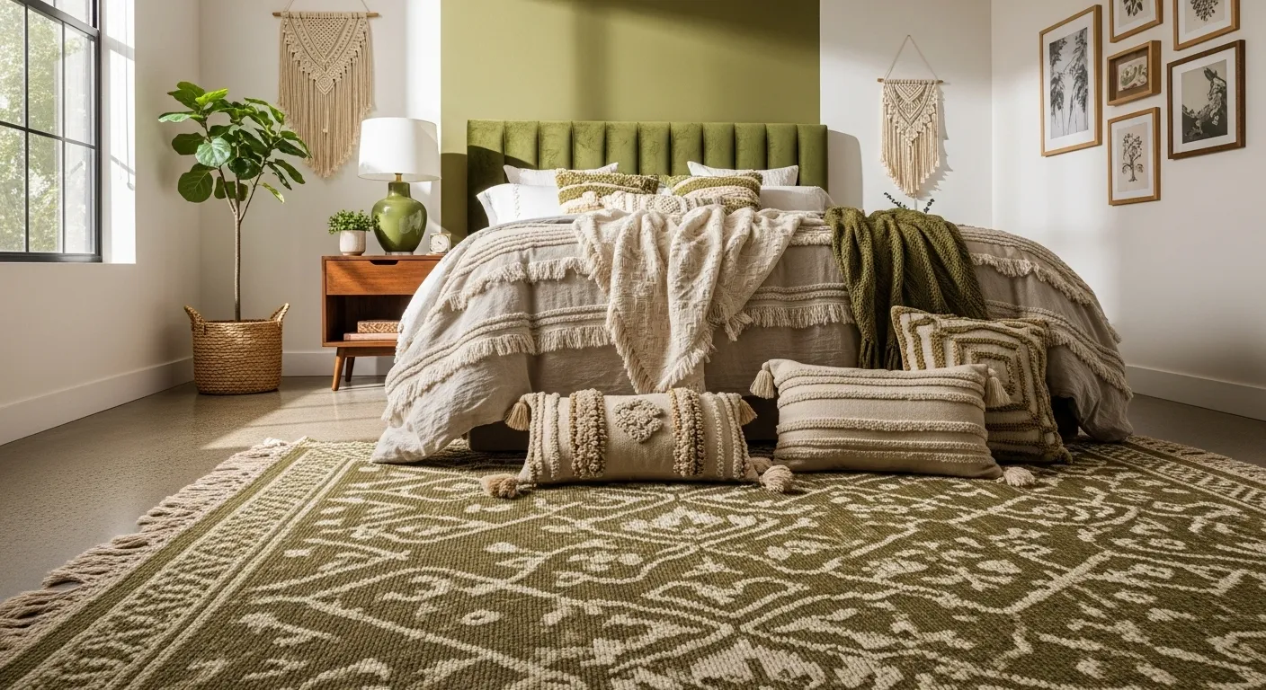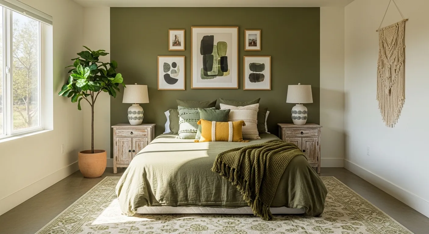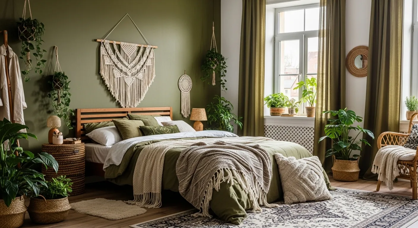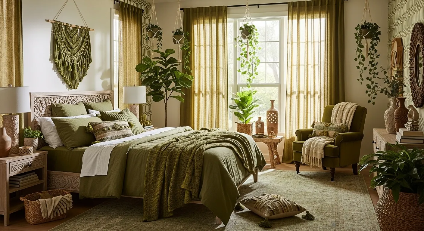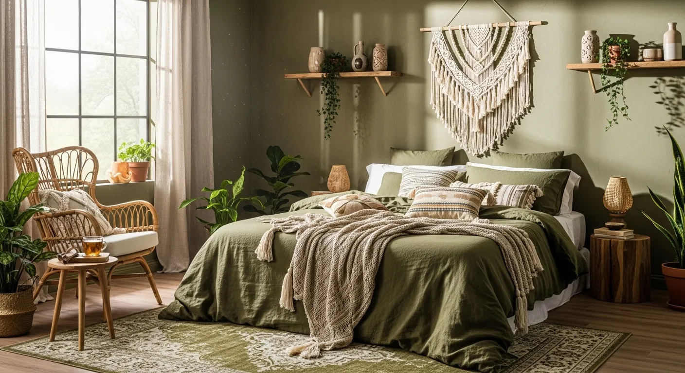 Cozy Bohemian Bedroom in Olive Green