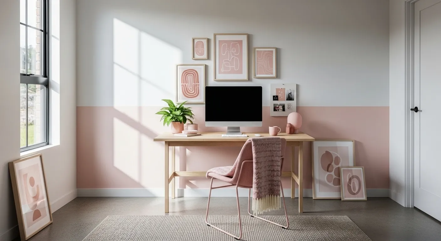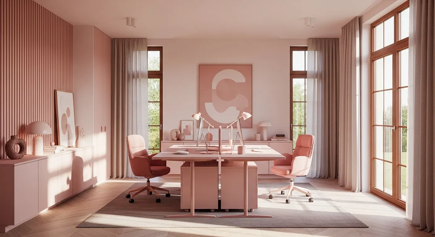 Serene Blush Minimalist Home Office