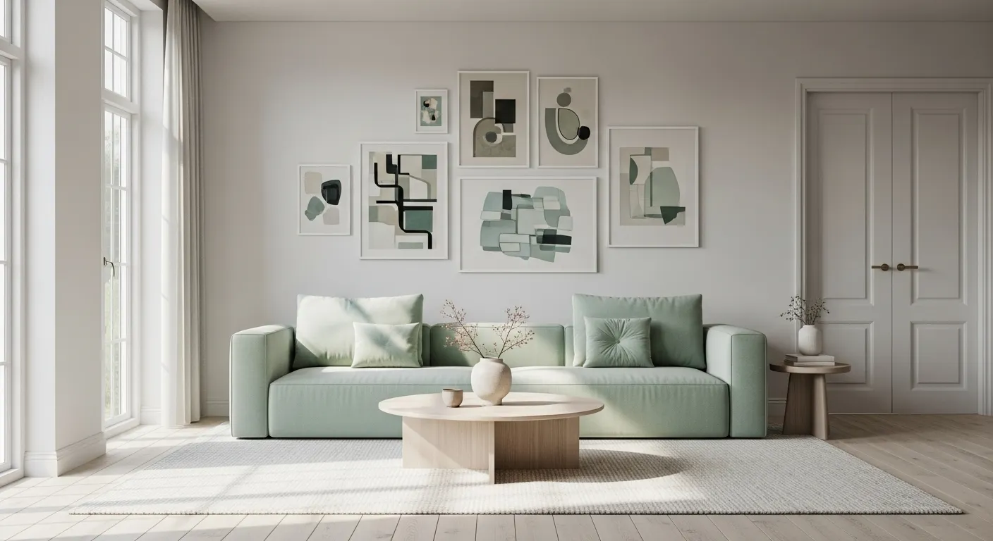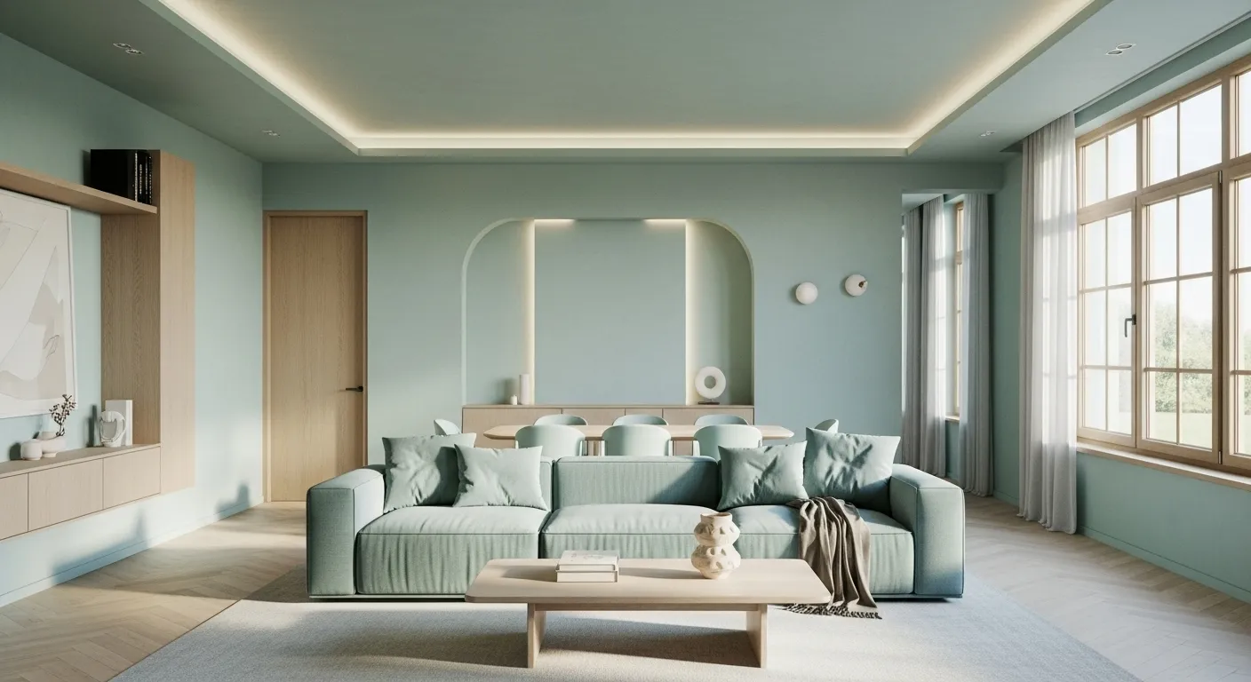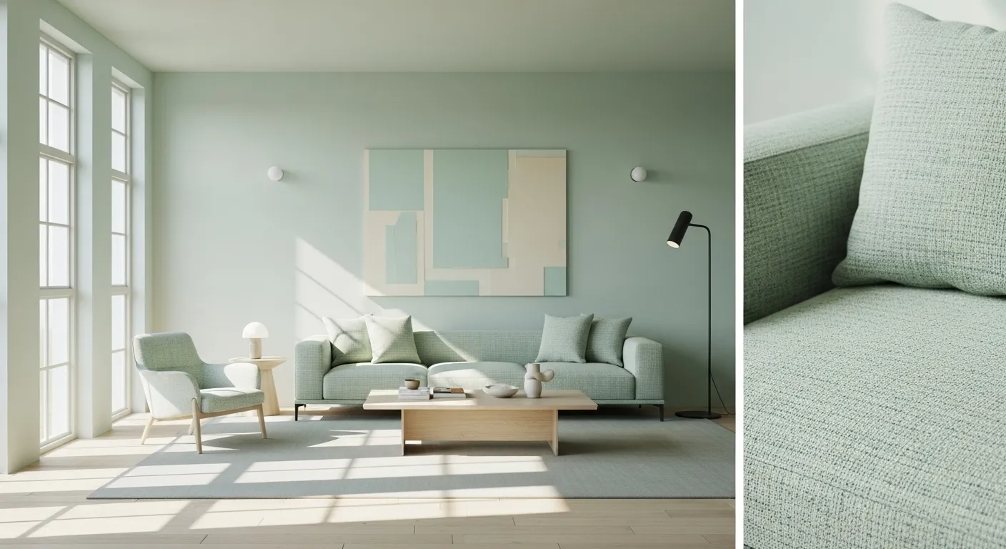 Chic Minimalist Living Room in Pastel Mint