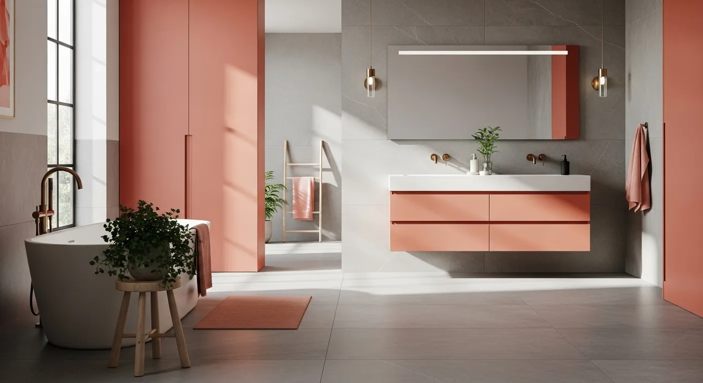 So, why not bring the uplifting essence of coral into your bathroom? This modern color palette will not only enhance your space but also elevate your mood. Dive into this refreshing decor choice today!