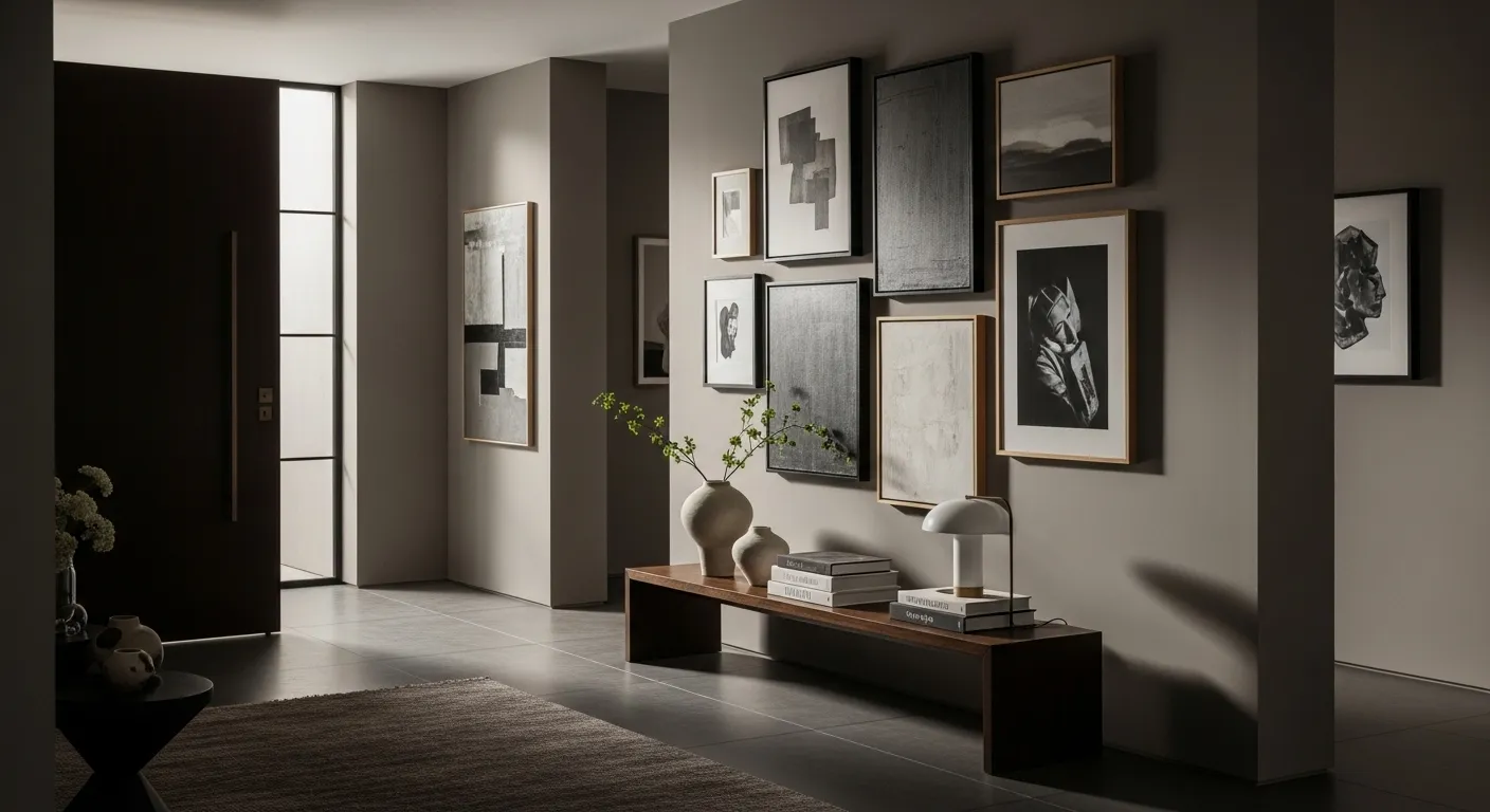 Oh, this entryway is just beckoning you in with its warm truffle tones! The soft, earthy palette creates such a soothing atmosphere—perfect for everyday life. Featuring a sleek bench and an eye-catching gallery wall, it’s a blend of modern elegance and cozy charm. To keep the vibe inviting, consider adding a fresh plant or a subtle floral arrangement. It’s a little touch that makes a big difference and ties the whole look together beautifully!