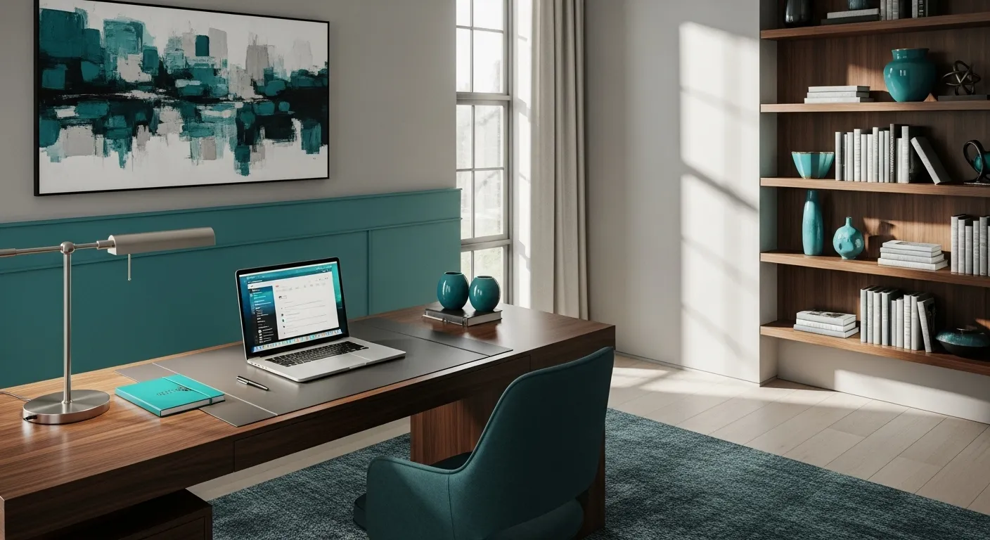 So why not embrace the power of teal in your home office? This modern color palette will transform your workspace into a serene and stylish haven. Give it a try, and watch your creativity soar!