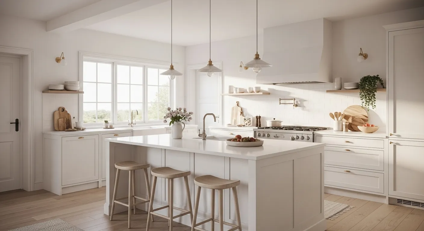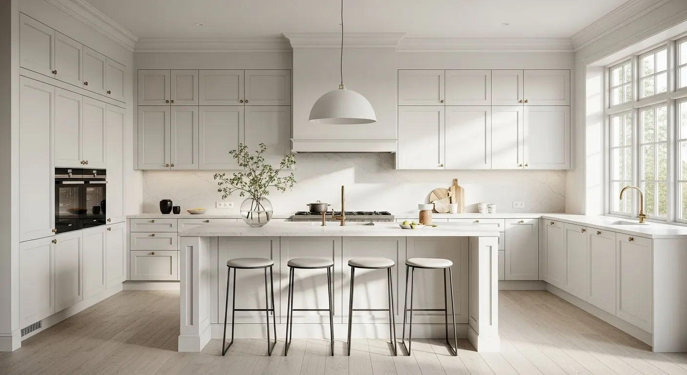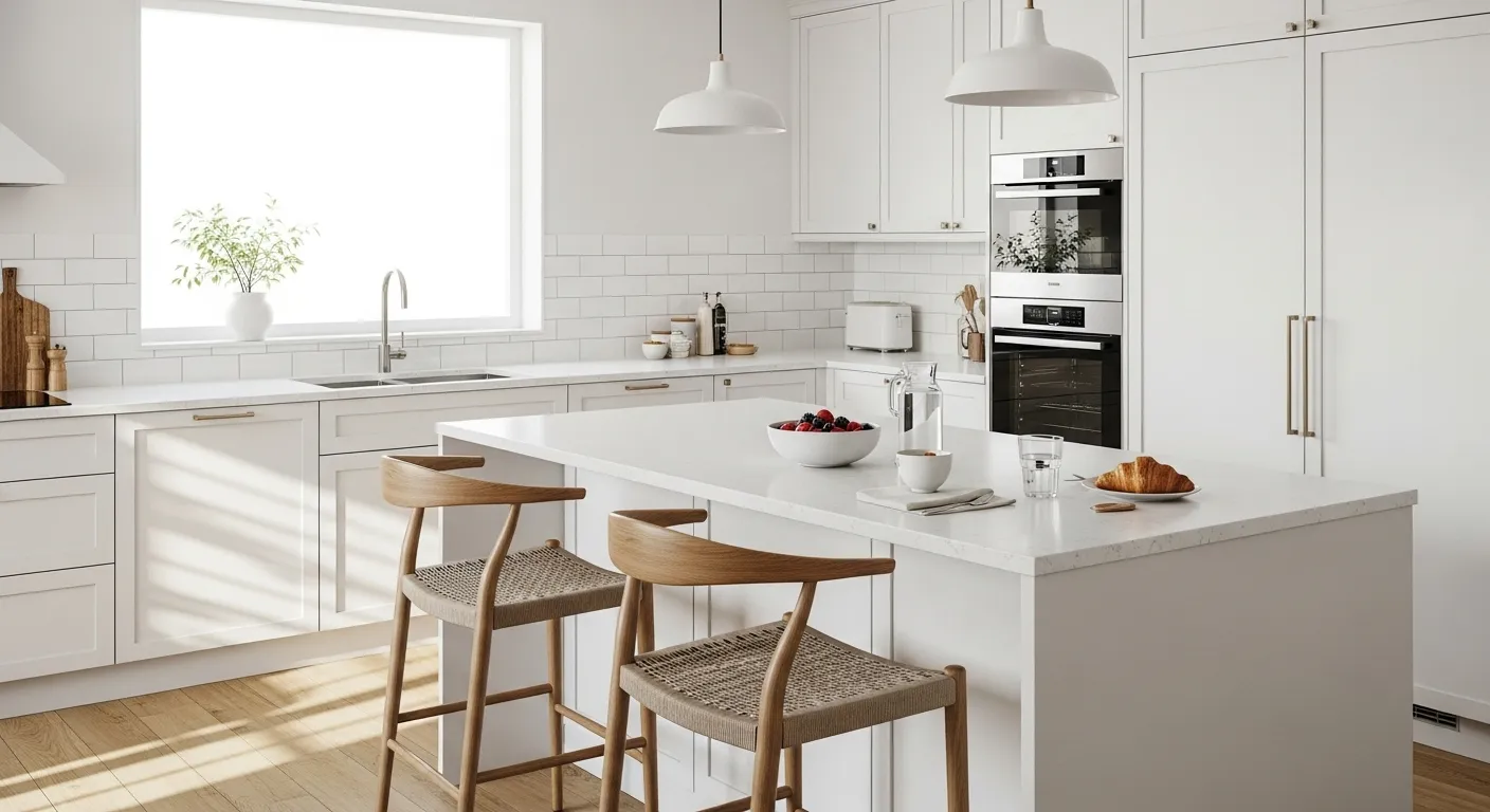 Step into a bright and airy kitchen that perfectly captures the essence of Scandi style. The all-white color palette creates a serene and inviting atmosphere, making it the ideal spot for everyday meals or entertaining friends. With sleek cabinetry and natural wood accents, this kitchen feels both modern and warm. To enhance that cozy vibe, consider adding a touch of greenery with potted herbs or fresh flowers. It’s a small detail that makes all the difference, bringing life to your space while keeping it effortlessly chic!