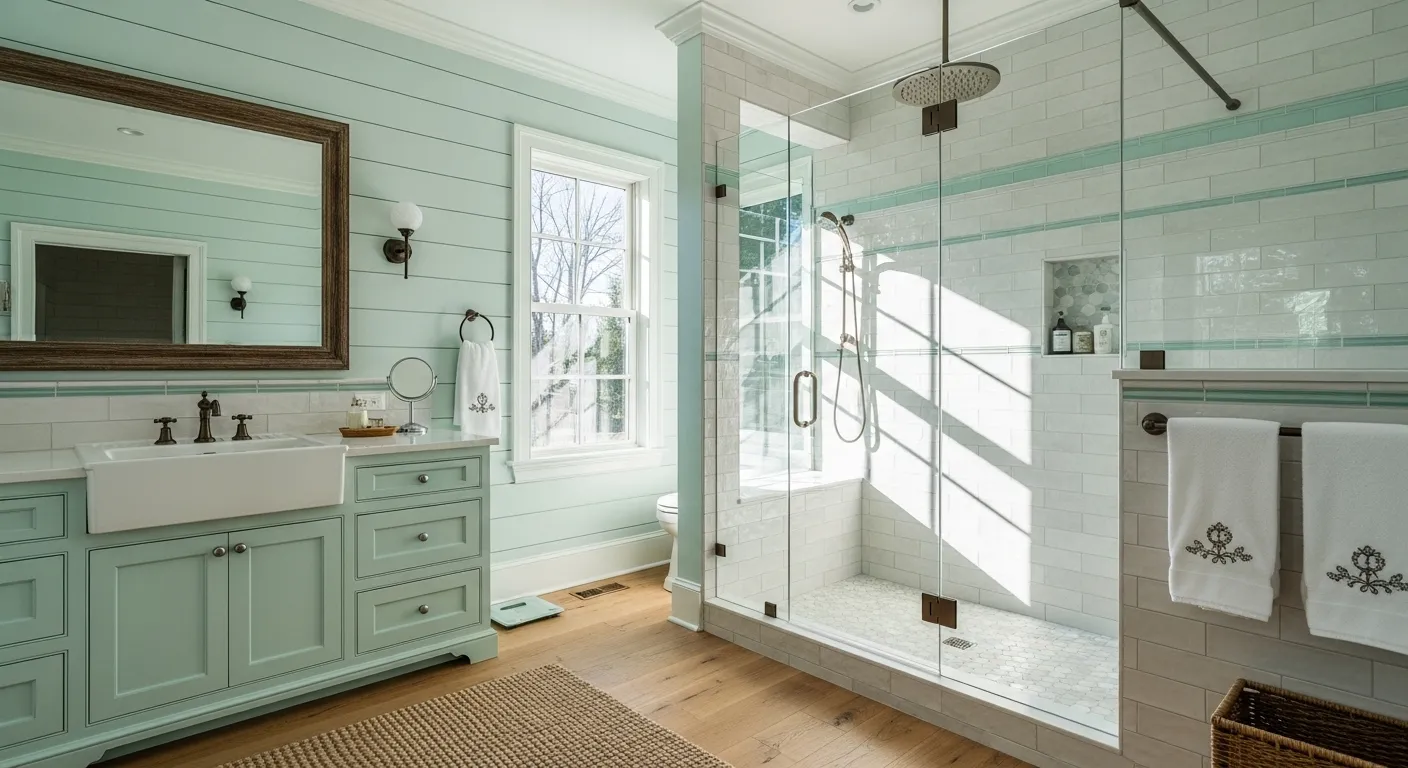 Imagine stepping into your bathroom and instantly feeling a wave of calm wash over you—that’s the magic of pastel mint! This soothing hue evokes tranquility and freshness, making it the perfect choice for a farmhouse-style bathroom. Picture a charming wooden vanity paired with vintage-inspired fixtures, all accented by the soft, cool tone of pastel mint. It creates an inviting atmosphere that feels both cozy and rejuvenating. You will love how this color makes you feel, as it effortlessly brightens the space while maintaining that lovely rustic charm characteristic of farmhouse design. Whether it’s a relaxing soak in the tub or a quick morning routine, pastel mint helps set a serene mood in your personal sanctuary.