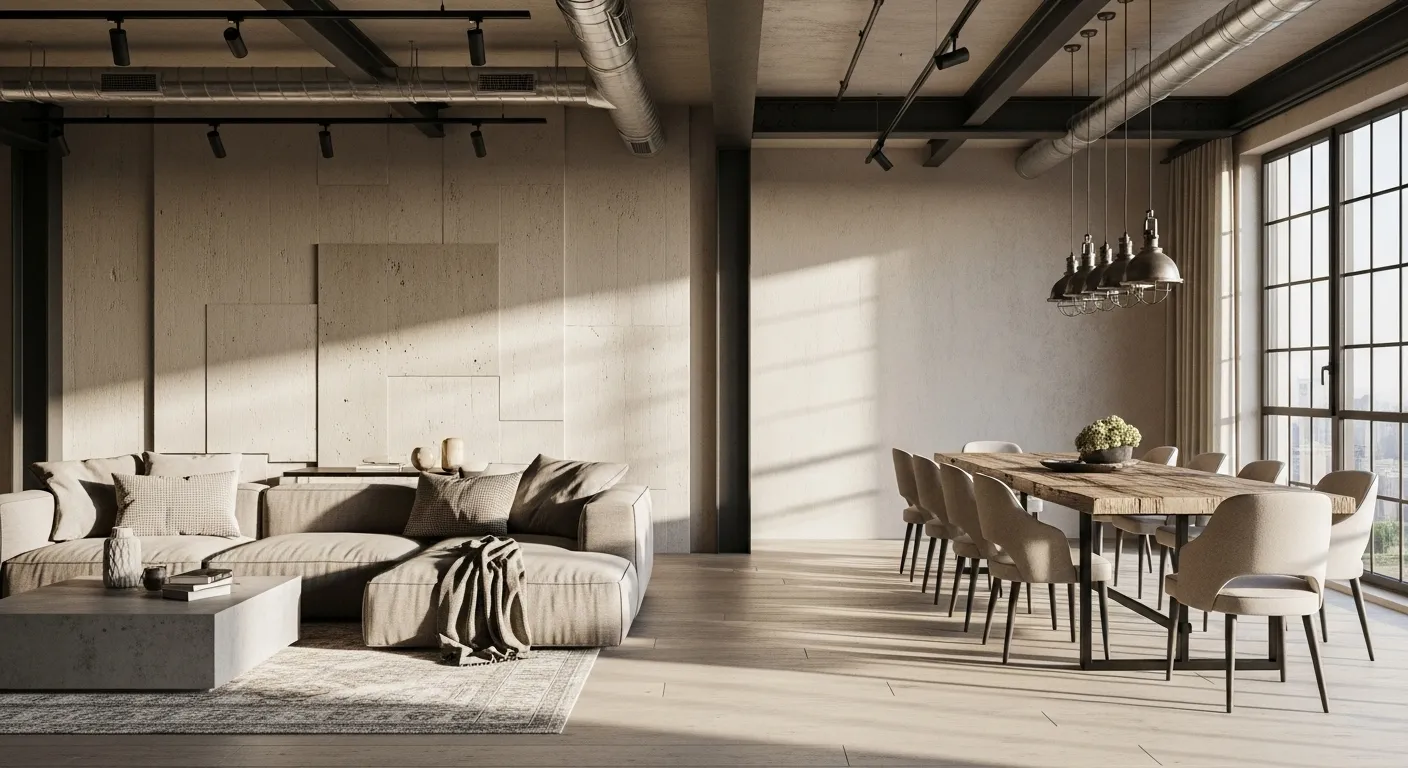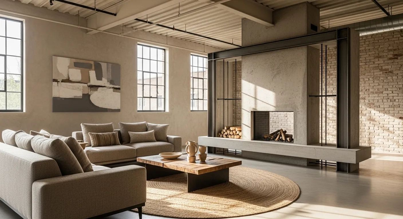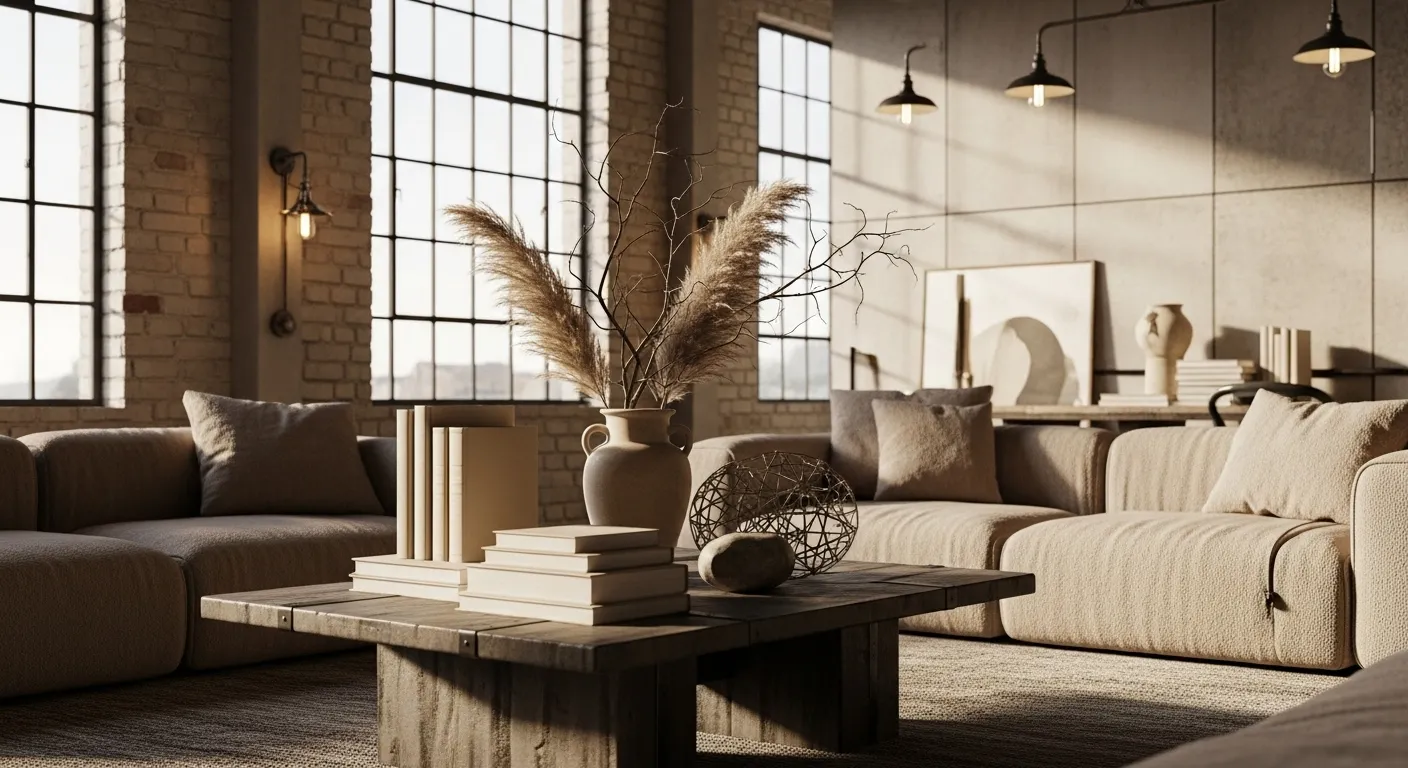 Cozy Industrial Living Room in Beige